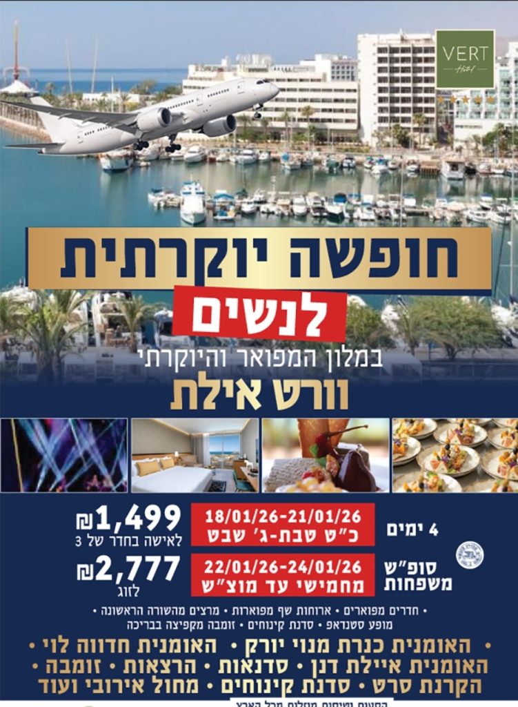 חופשה כשרה למהדרין 2026 תשפ"ו לנשים במלון ורט באילת עם תוכנייה מעלפת עבורכן